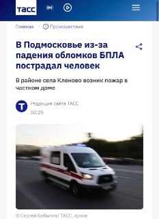 В результате падения обломков одного из сбитых БПЛА в Подмосковье пострадал один человек.