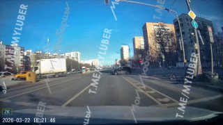 Момент аварии на Щелковском шоссе в Москве.